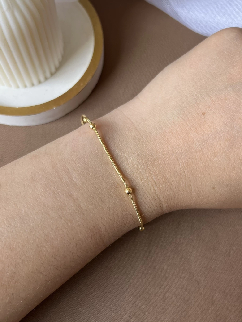 Pulseira de bolinhas na malha rabo de rato, perfeita para qualquer ocasião ou combinação, possui 17cm.