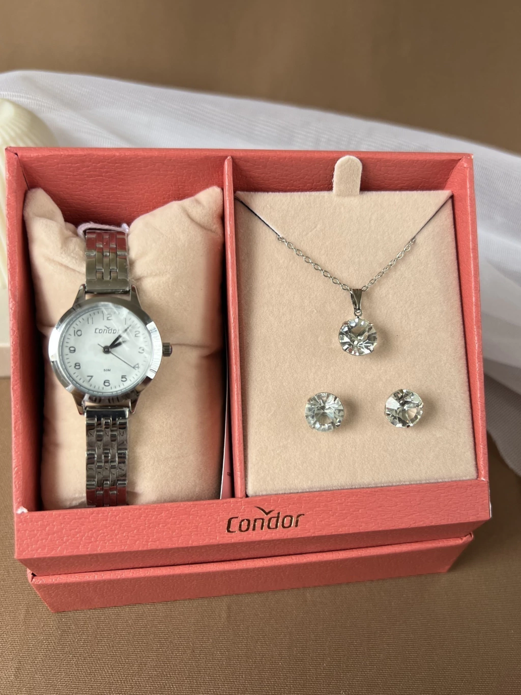 Garanta já o seu Kit Relógio com Colar e Brincos e destaque-se com charme e sofisticação em todos os momentos!